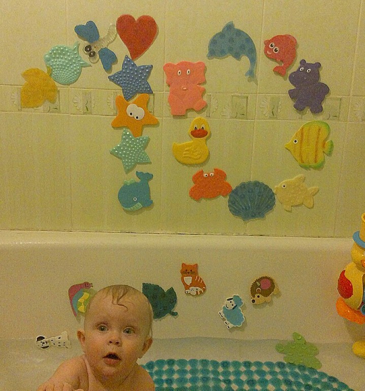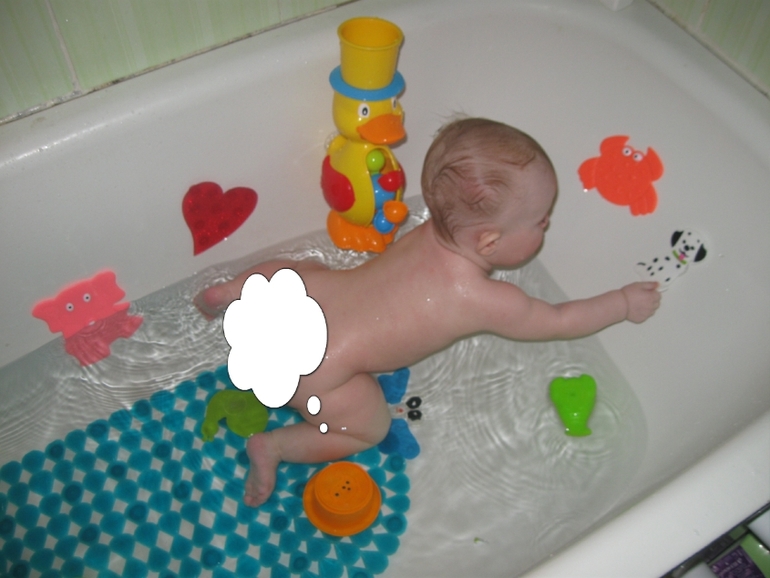 Ну,а когда уж сели,то вообще ,сплошное удовольствие.Купила я стул на присосках,но дочь уже привыкла,свободно по ванне перемещаться,поэтому вытерпела его один раз.Из любимых занятий ловить кусочек мыла,оторвать все игрушки на присосках,папу забрызгать как следует водой, мыльные пузыри ловить и саму воду из под крана ловить