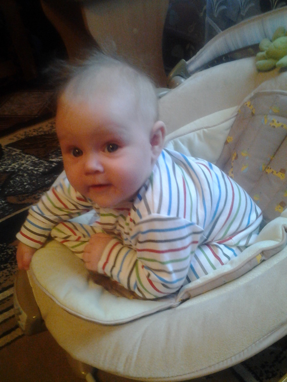 прям сам после 6уже ближе к 7,а так сажали в подушки,иначе скандал,лежать нехотел,у меня насчет сидения все ранние :)