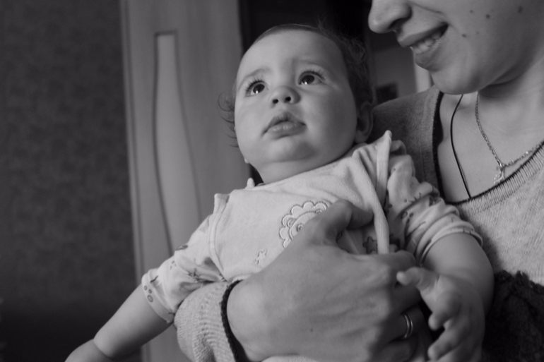 - новая фишка,самая приятная:она нас зацеловывает,при этом открывает ротик, закрывает глазки и обнимает голову двумя руками...Это непередаваемо. Распространяется это на меня,маму,иногда на папу с мужем и даже соседку. Это при том что Алиса мало кого к себе подпускает из не родных;