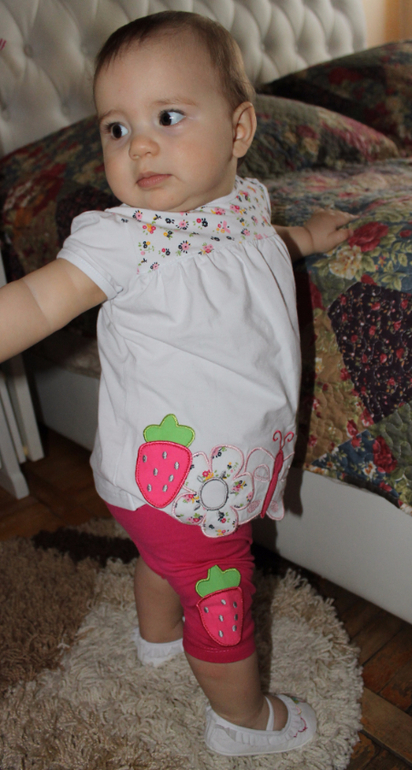- уже стоит достаточно уверенно,но шаги не делает пока, но видно что вот-вот должа пойти,оно даже чувствуется;