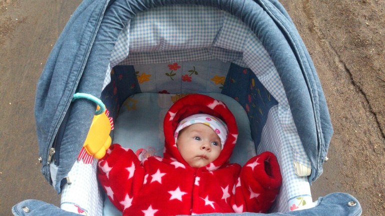 Моему 3 мес, погода у нас +3-6 одеваемся так же примерно - хб слип и деми комбез, шапочка тонкая вязаная плюс капюшон. У комбеза руки, ноги закрыты. Тоже теплый, если прохладно беру с собой флисовый плед. мехового конверта у нас даже нет, зимний комбез Ленне - ни разу не мерзли. И да, я из тех кто в ветреную погоду одевает на коляску ветровик ( он из не продуваемой ткани и окошечко из пленки), не думаю, что он лишает кислорода. У нас у люльки капюшон не опускается низко и у накрывашки не поднимается защита, тч спасаемся от ветра так, иначе начинает просыпаться. Тоже частенько смотрю на некоторых мам с детишками и думаю как они еще не сварились;))) хотя тут конечно дело каждого...