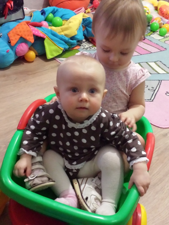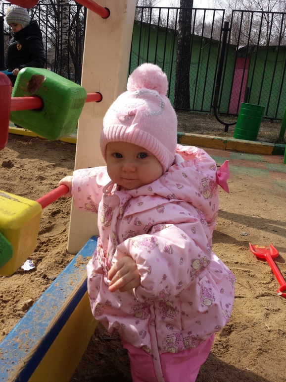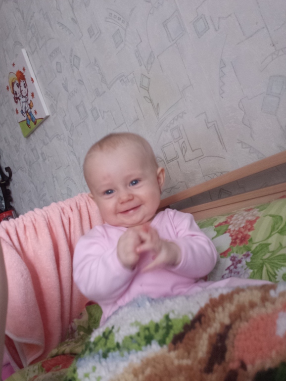 За этот месяц Лизка еще больше повзрослела и стала еще смышленее. Ладушки (особенно хорошо на головку сели получается),пирамидку разбирает и пытается собрать,если сосредоточится,то пару раз получается одеть колечко,а так координация еще не особо позволяет,знает лялю и гладит (больше скребет ногтями) какая ляля хорошая, что то говорит с разными интонациями на своём тарабарском и частенько нам устраивает целые монологи,смешно до невозможности,главное так серьезно это делает! Очень любит,когда приезжает бабушка (моя мама),она бывает у нас 1-2 раза в неделю,привозит подарки и новые наряды,а главное играет с Лизкой,остается с ней,когда я хожу в зал. Папу с работы встречаем с визжанием и хлопаньем в ладоши)))) но мамин хвостик, ну наверно это естественно.