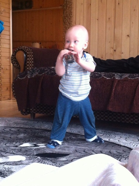 Мы начали ходить самостоятельно. Сначала по 2 шажочка, сейчас уже может метра 2-3 пройти сам. Может остановиться, постоять и дальше пойти. Может присесть на корточки, поднять игрушку и встать без опоры.