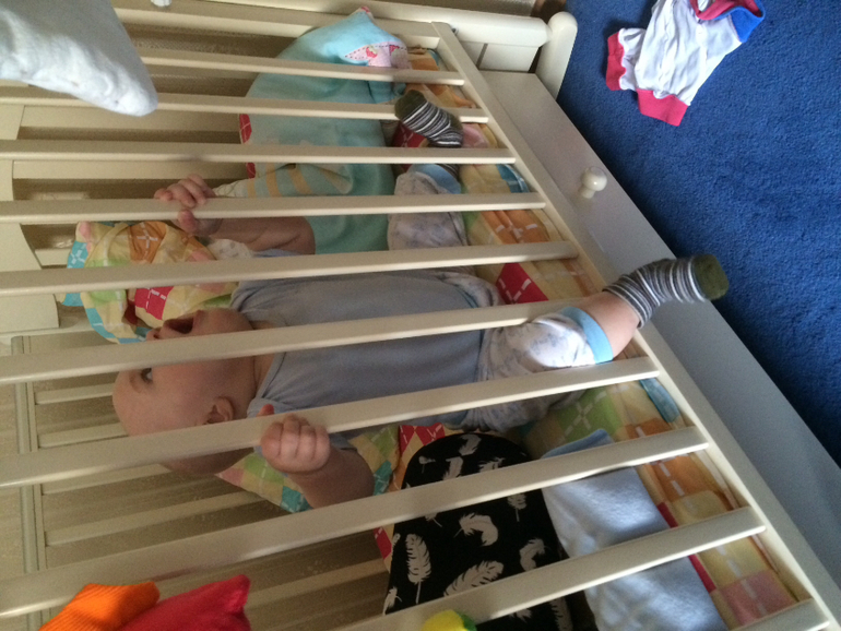 Уверенно сидит месяцев с 5 точно, а так ползает вовсю на четвереньках, встает у кроватей ( Лишь бы было за что подтянуться) и начинает уже пытаться держаться одной рукой)))