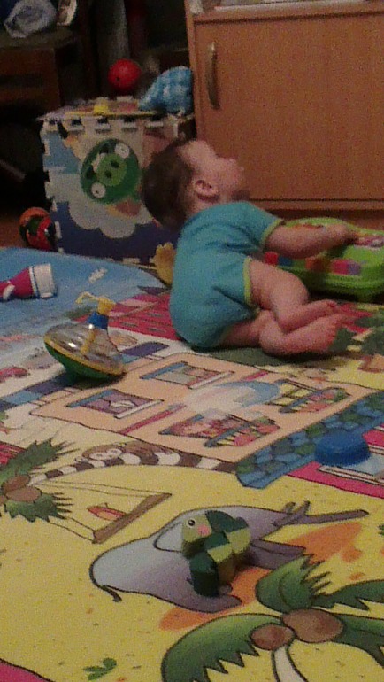 Вот жеж...а сын у меня ползает,правда на животе,но активно.И постоянно встает на четвереньки.