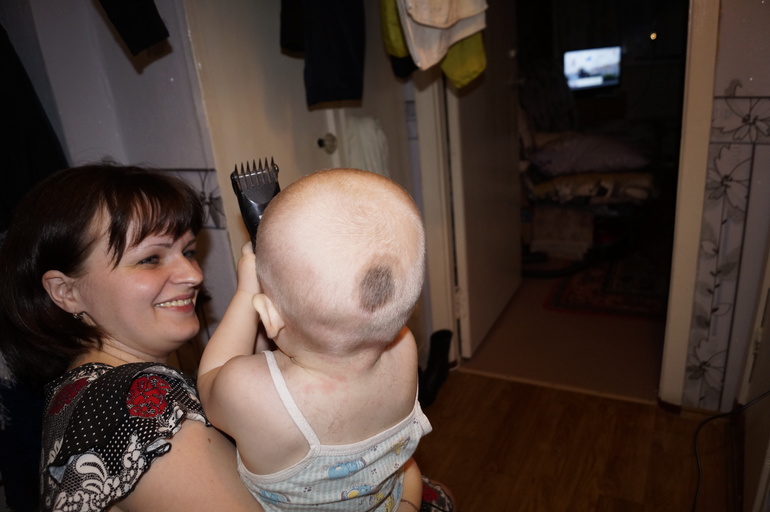 Спасибо! Жалко, но волосы растут неровно. А так сравняются. Да и жарко ей. И путаются. До лета подрастут. И всё равно в косынке бегать будет.