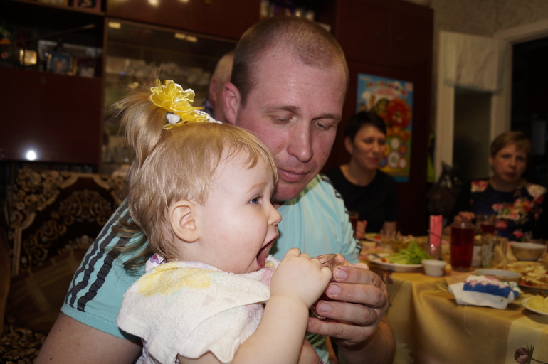Дочь перешла на 1 дневной сон. Поэтому празднование было в 17.00. После сна. Были бабушки и дедушки, дяди и тёти, и, разумеется, крёстные родители.
