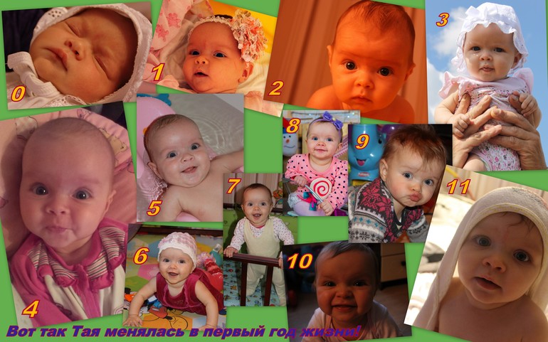 К году мы имеем 7 зубов,пошли в год и 2 дня сделала первые самостоятельные шаги!