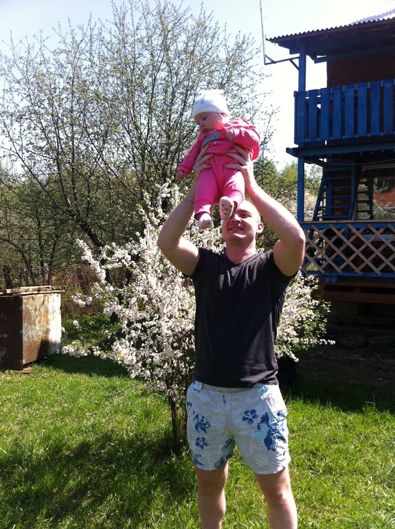 Любит, когда папа ее на руках качает и поднимает "высоко-высоко"