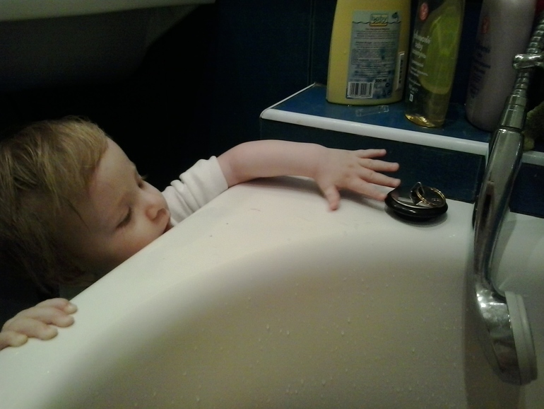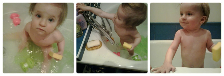 Затем Утренний душ у мамы) Мама моется, а Русалина тыкает кнопки на стиралке, заглядывает в унитаз или пытается, что-нибудь стянуть с бортика ванны))