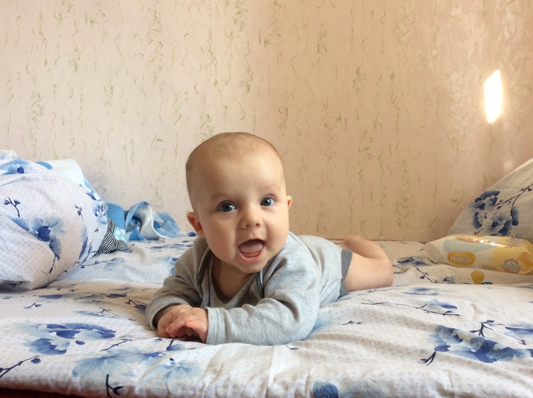 На улице чаще всего спит в коляске. Но бывает что просыпается и кричит пока на руки не возьмешь. Потом затихает и смотрит по сторонам. Хохочет если смешить его.