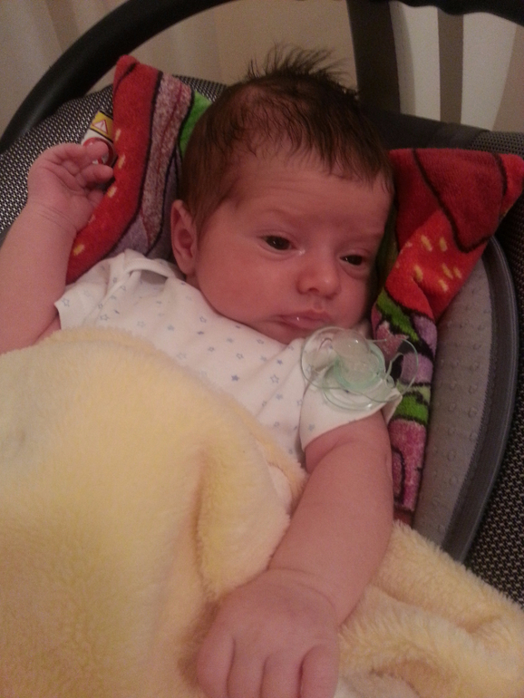 Наш месяц был 16-го числа, отметили его втроём: я, муж и Марк. Съездили на новую Набережную Трибуца, погуляли, потом покормила в машине и поехали в кафе - очень понравилось втроём))Марк не спал, смотрел по сторонам и слушал музыку))) В больницу ходили в четверг, набрали 900 грамм от выписанного веса) Родились 3790, выписались 3490, сейчас 4400, но рост нам намерили такой же как ив рд...вот мне интересно, как они так мерят??ещё и мед.сестра на моё "Как 55?мы родились с таким ростом", сказала: "Ну 55 см., вы точно не могли родиться"....ну по одежде то видно что вырос, я намерила дома 57 см., посмотрим что намерят нам в 2 месяца) тем более педиатра на нашем участке нет, и ходим мы по дежурным. Это вообще дурдом, 2-3 участка к одному педиатру, и главное помимо грудничков были и взрослые дети...в очереди к педиатру просидели мы 2 часа, хорошо что Марк спал)))