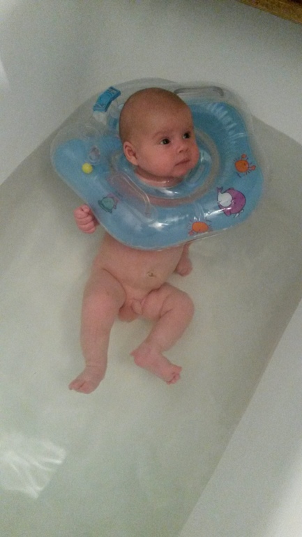 А какую температуру делали, подскажете? Тоже хотим с кругом начать, а то на папы ручках совсем недолго получается... (( пока при 37 купаем.