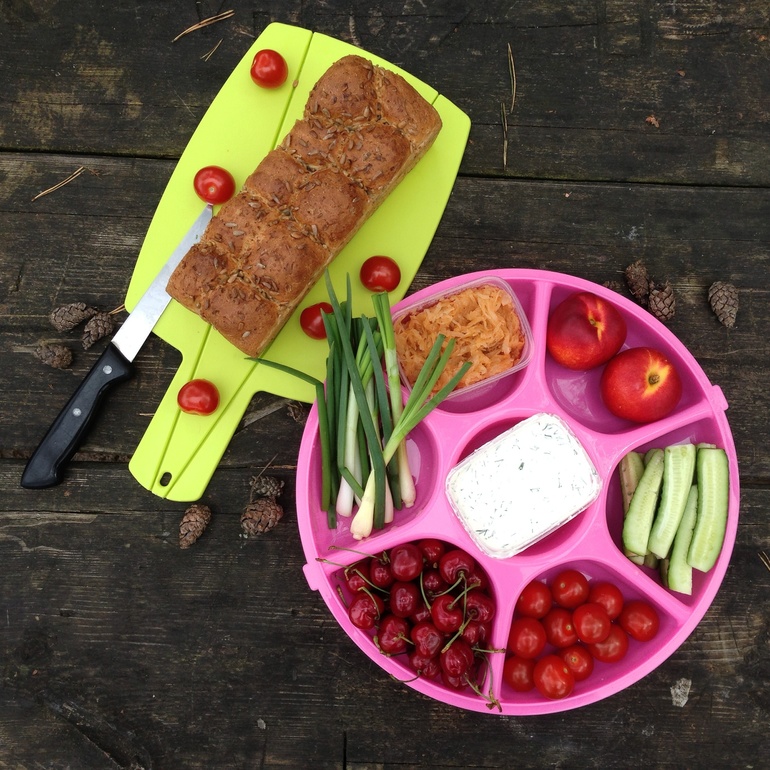 Максимке из дома взяли обед, и вот он впервые обедал на природе)