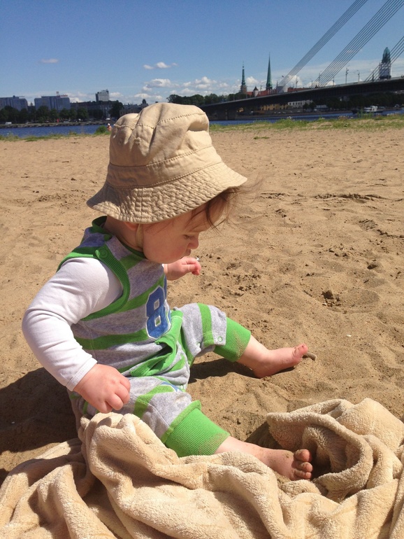 Немного погреться на солнышке и познакомить Максимку с песочком.