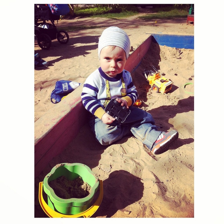 Очень щедрый парень) игрушками на площадке делится со всеми) кормит меня своим печеньем и выливает от большой любви на меня морс)))