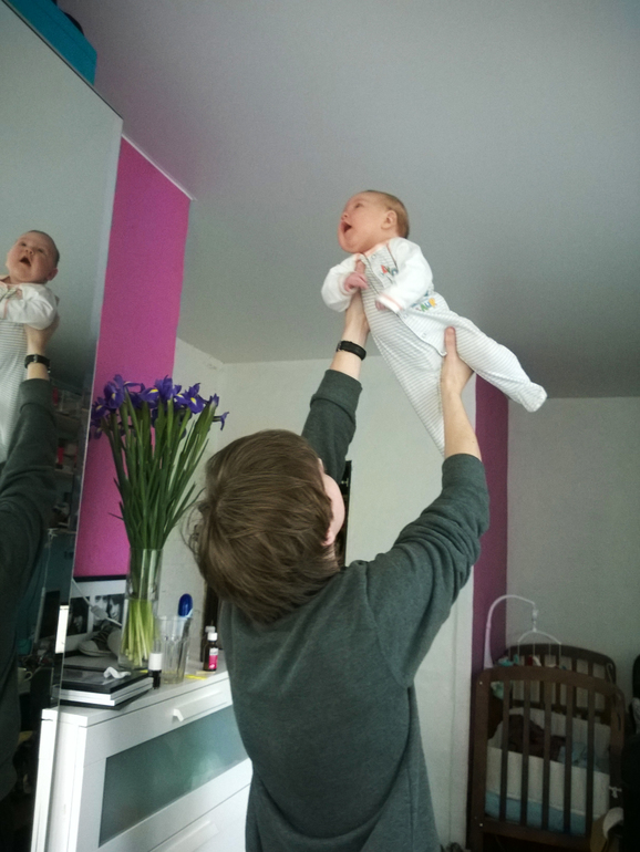 Ушла я как то на тренировку, оставив с трудом уложенного спать сына с папой. Прихожу - а они летают! Обычно сын может часами кататься на папе столбиком, но тут решил что хочет летать.