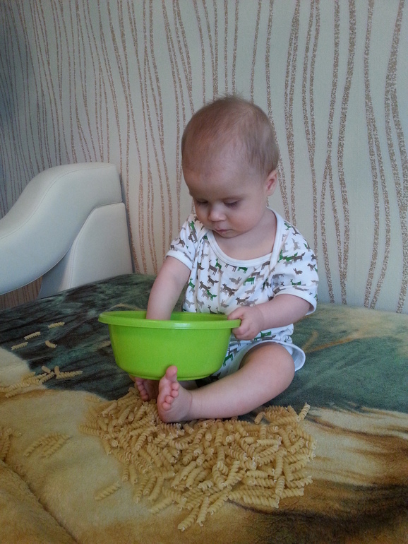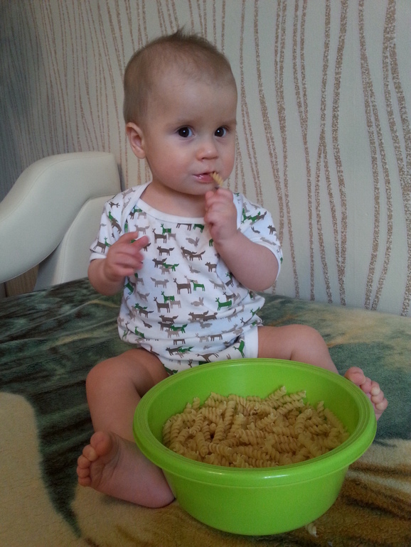 Спасибо за комплимент super_smilies086.gifДа я сама только пару раз пока давала, смотрю в оба когда он в ротик макарошку тянет) А так да, макароны потом по всему дивану собираю)