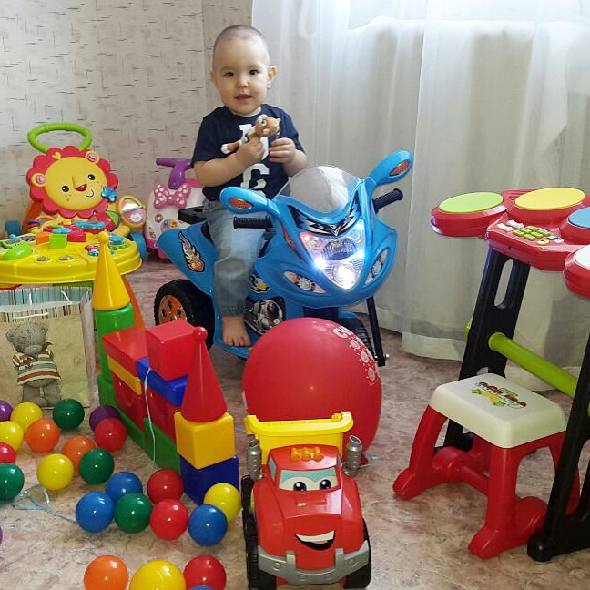 Игры дома. Сортер привлек его внимание; собирает пирамидку -все подряд, не по порядку; строит башенки из кубиков; опять же мячи, машины; коляску катает(кукольную), когда Аиша не против), музыкальные обожает) Но по-прежнему, на первом месте наш робот-пылесос)) к нему аж с восторженным визгом несется на всех парах)) если убираю, орет так, что проще вернуть...ну и провода не может обойти стороной)