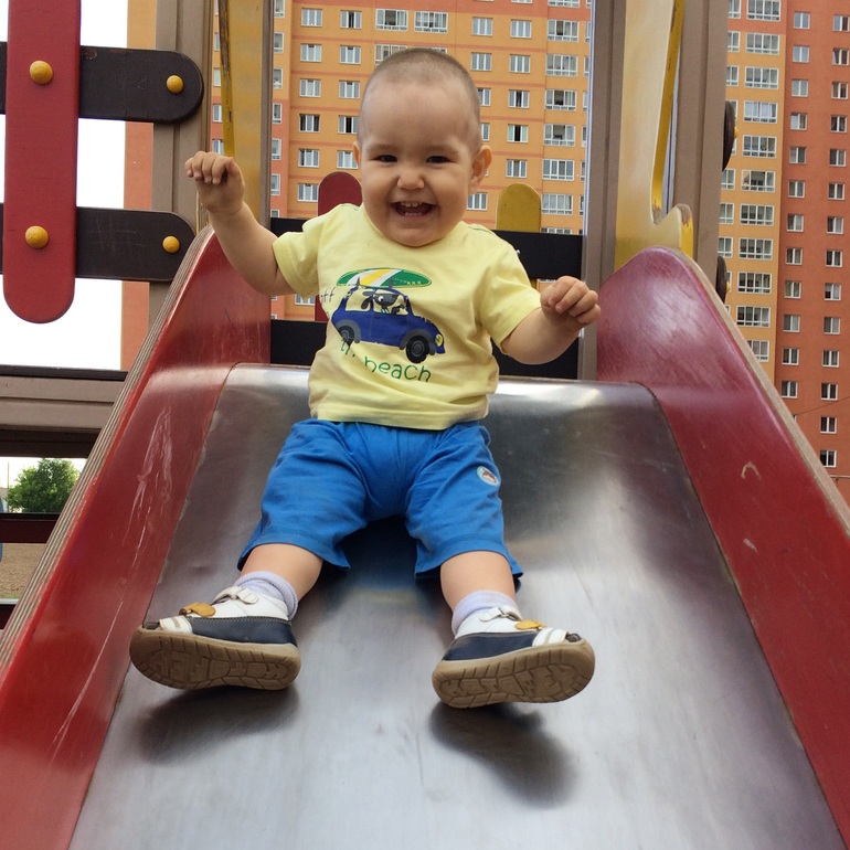 Прогулки. Это наше все) стоит отпустить на площадке, Реш безмерно счастлив)) лезет везде, трогает все) играет с мячом, с машинами, с лопатками в песочнице, рисует каракули мелом(иногда пальцы встревают), катается с горок. Понравился самокат) сам стоит на нем, я катаю) заваливается конечно, ловлю) сам катается на машинках-еще и встает ногами на них... Не любит жару, психует когда солнце припекает...Еще лестницы и бордюры так и манят его.