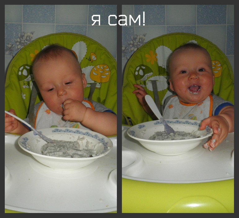 ХвастаемсяНам 8 мес через 3 дня, гостим у бабушке в деревне,где впервые сами попробывали кушать