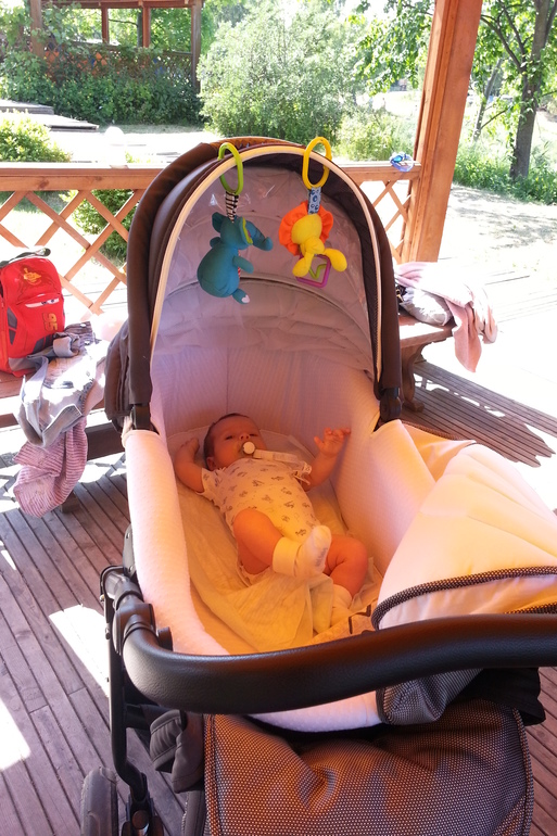 Весим мы 5060 и рост в поликлинике намерили 56 см всего, хотя дома я 3 раза мерила с мамой и итог: 58 см, и по одежде также видно что растём))за этот месяц набрали 760 грамм, за прошлый 810 грамм, я считаю что это средняя прибавка. Марк стал безумно энергичен, вечно в движении, сам засыпать днём не хочет, только сквозь слёзы, только когда укачаю, пытается бодриться) Гуляем на улице хорошо, в основном спим, но бывает и бодрствуем, нравится ездить с нами везде) ведёт себя хорошо, главное чтоб во время есть давали, как только захочется - а хочется нам всегда внезапно)) 12-го числа ездили в Янтарный к мужу на ежегодный летний корпоратив, мы были там самые маленькие, нам очень понравилось, ели шашлыки и плов, гуляли, дышали свежем воздухом, любовались природой. Было много развлечений помимо шашлыков, пива, моря и солнца: игры в волейбол и бадминтон, анимация для деток, квадроциклы и т.д.