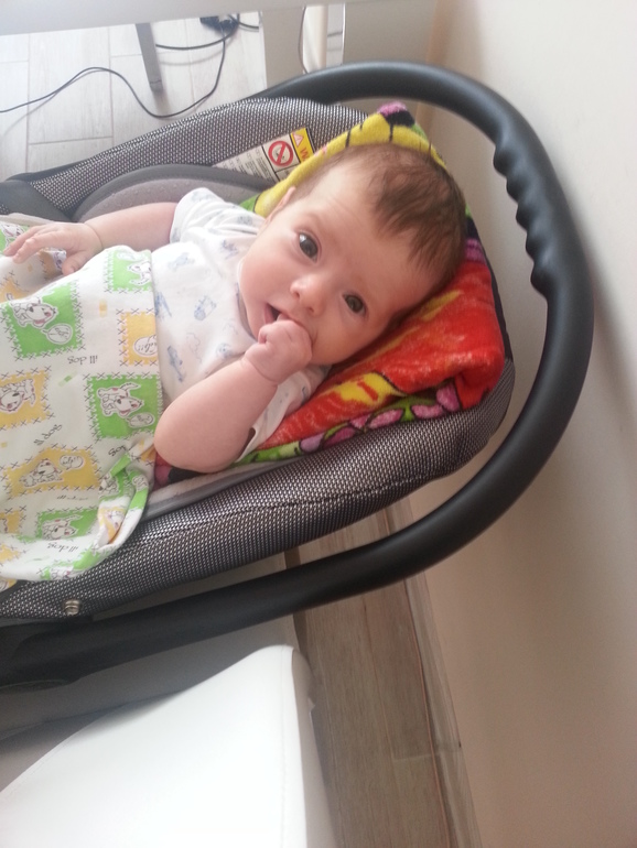 Колики стали реже, но всё равно иногда бывает плачем минут пять после кряхтения, помогает бейби калм (боботик и смекта - зря выброшенные деньги на ветер), хотя он и стал стоить 600 руб.уже, вместо 300(( массажик живота, подживания ножек к животику и выкладывание на животик - иногда пол ночи так спит). Я стараюсь пробовать разную полезную еду, чтоб разнообразить питание, но пока на сырые овощи, такие как сладкий перец, листья салата - зеленеют какашки, но мы будем пробовать и дальше, чтоб получать витаминки и как то есть хоть чуть чуть салатиков, пока из сырых овощей нам подошла морковь и пекинка, а из фруктов: бананы и черешня только очень зрелая и из Сербии и Турции. а так даже на нектарин высыпало личико( Ну ничего, переживём) главное чтоб зайчик мой питался грудным молочком)) Пользуемся подгузами Мерис, только вот в дет.мире они пропали с этой недели - большие пачки нашего размера М, и будут ли вообще - неизвестно, т.к. даже на сайти их нет в ассортименте, если совсем исчезнут - что делать - не знаю, переходить на гуны?