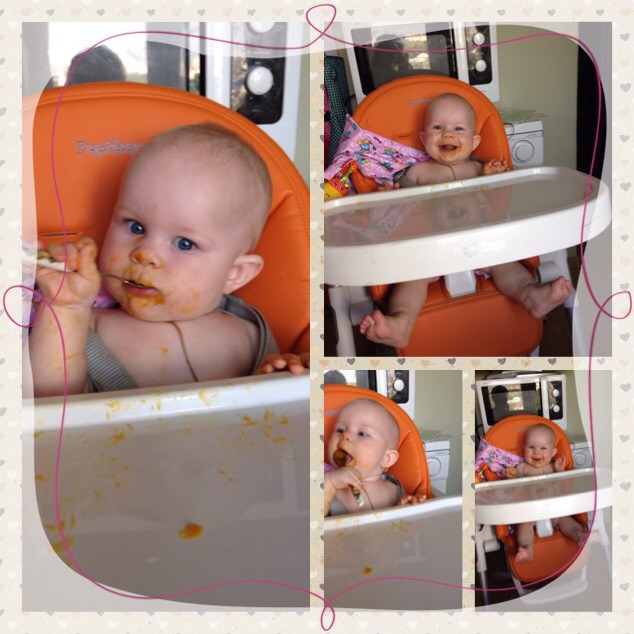 Гв - рулит, как я счастлива от гв! Гм - основа рациона Полины. Из прикорма пробуем всего по чуть-чуть. В основном - овощи, меньше - крупы, фрукты. Прикармливаю в обед, если просит то и в другие свои приемы пищи. Теперь она практически не сидит в стульчике спокойно как раньше с ложкой или игрушкой. Теперь надо что-то обязательно дать помусолить. Желательно что-то, что ем я. Когда ест обязательно мычит, издает разные звуки, припевает себе под нос )) очень понравились нам фрукты: сливы, персики, вишня, черешня, клубника. Ест все вживую без всяких гаджетов, под пристальным маминым наблюдением.