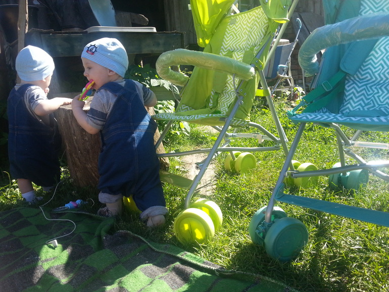 Мои Тёма и Тима начали ходить! Самостоятельно могут преодолеть всю комнату шагом. Пытаются бегать, но быстро бУхаются на пол))