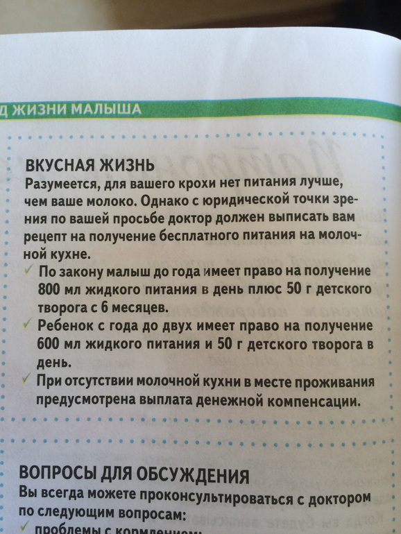 Получаем на молочной кухне смесь, соки, творог, кефир, овощные, мясные и фруктовые пюре. Так что все правда.