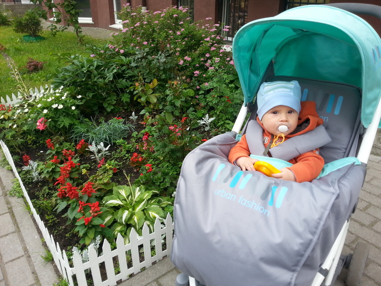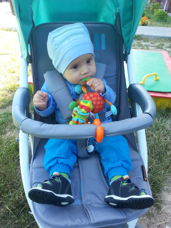 Вы хорошенькие!!)) и погода правда отличная, у нас сейчас примерно такая же:-). А ты вытаскиваешь его из коляски на улице? Я стала Лизу доставать чтоб потихоньку ходить начинала, она сначала просто стояла рядом с коляской игрушки перебирала, потом шажок-два со мной за ручки, дальше больше, сегодня уже по парку за ручки гоняли, не остановишь — как понравилось!))