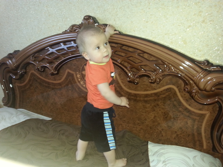 Спасибо большое!!! Да, достаю) Качаю на качельке и просто держу на ручках. На ножки ставлю, но он пока только стоит с поддержкой, не идет....но думаю скоро начнет)