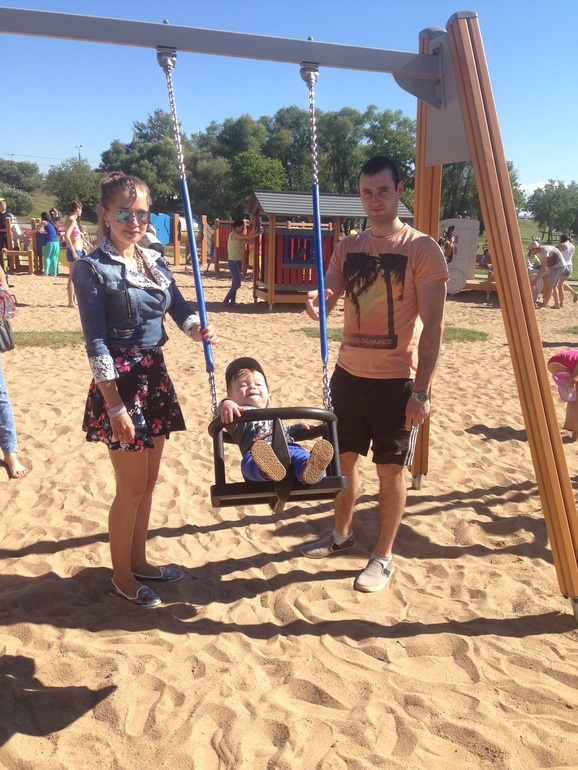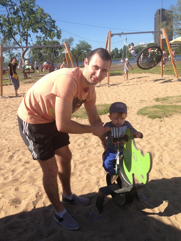 Ездили гулять на Луцавсалу, там обустроили классный парк, с качельками для малышей, аллея, покатали Максимку на качельках, а сами покушали морожко)