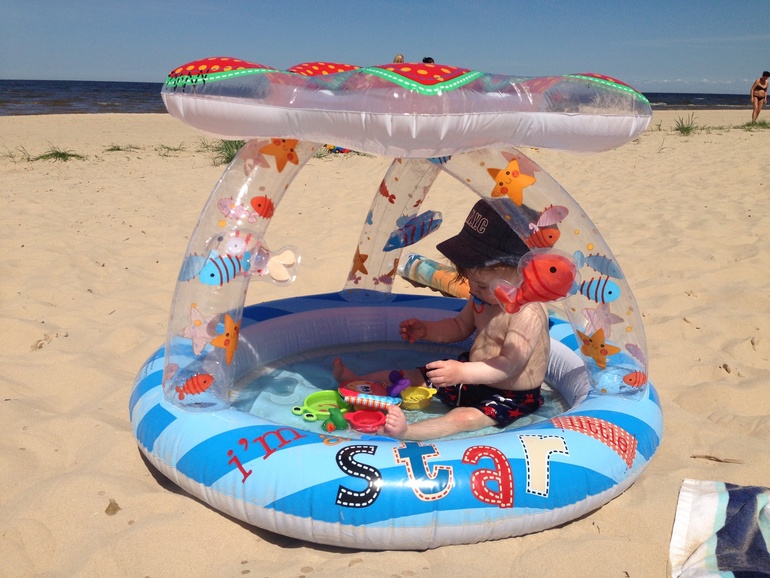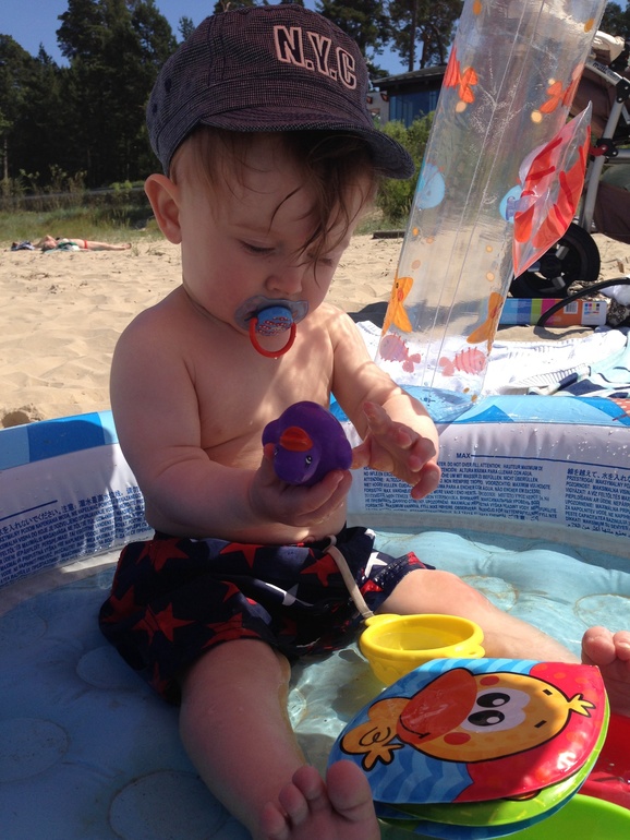 Купили Максимке класснючий бассейн, вот опробовали купаться в нём. Максимке понравилось, сидел там и перебирал своих утят, только потом начал выбераться от туда и был весь в песке)) Пришлось сушить ребятёнка и отпускать на свободу)))