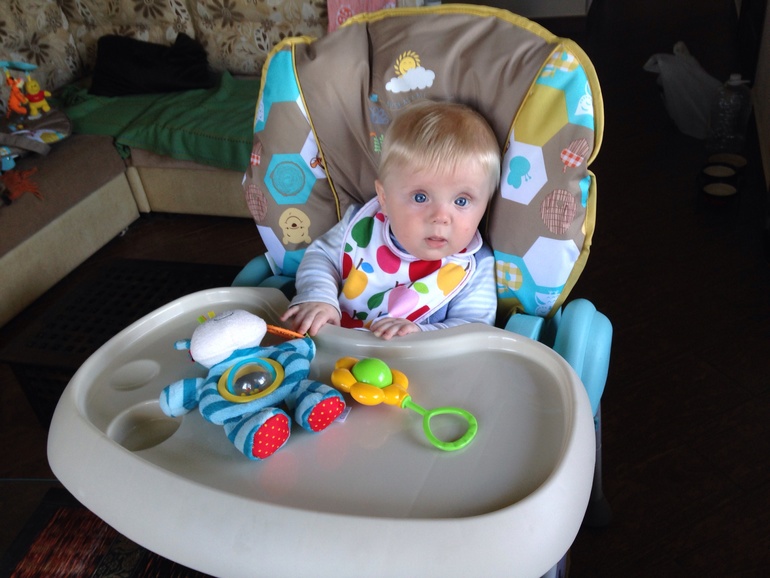 Начну с главного. Ну по крайней мере для человека, носящего на себе 10 лишних кг, это главное )) Я про себя и про еду )) Ребенок не разделяет моего энтузиазма и хоть был с рождения на ГВ, не сказать, чтобы особо любил поесть. Вес набирался сам собой. Это он в меня, ага ))). Так вот прикорм мы начали также без интереса. И если первые два дня он еще давал положить себе в рот ложки три кабачка, то потом смекнул, что рот не только открывается, но и закрывается. И все последующие три недели при виде ложки делал рот на замок, надувал щеки и изображал чрезвычайную занятость погремушкой.