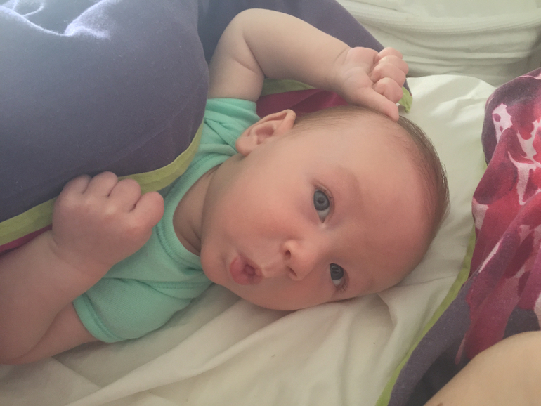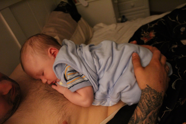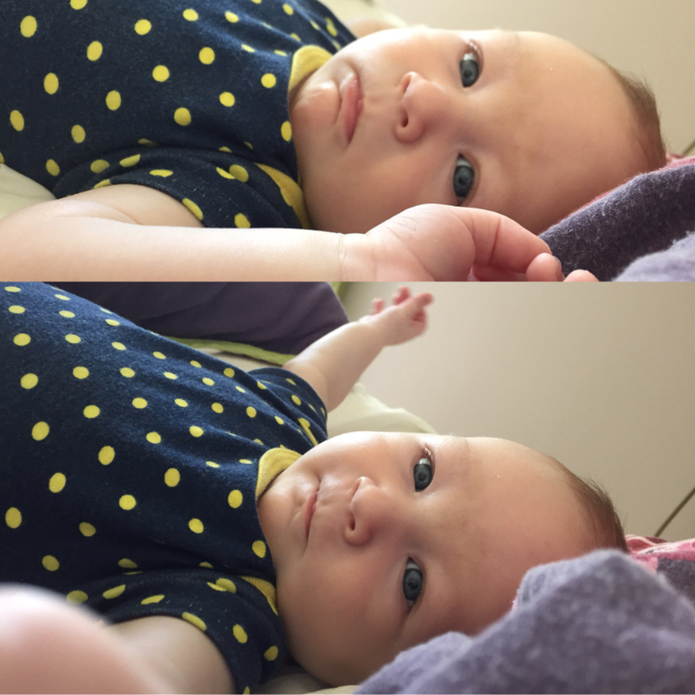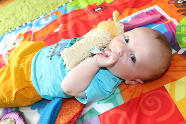 Даже не знаю с чего начать, спим хорошо, с перерывами в 5 часов, в 10 утра уже бодрячком и обычно в хорошем настроение, сам с собой играется, увидев тебя расплывается в беззубой улыбке.