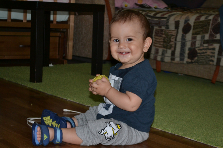 классный мальчуган. нам тоже 8 но мы побольше вас почти 9 кг. зубов уже 6. мы ползаем но на ножках ещё плохо стоит мотыляется