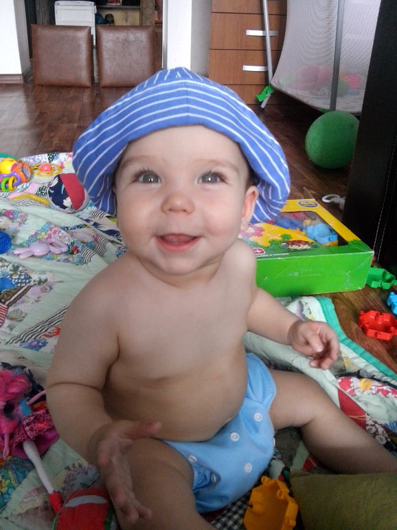 Научились отрывать ручонки и стоять по 3 секунды. Играем в мячик на ура, сразу поняли смысл и бросаем его оппоненту) ладушки и прочие забавы не впечатляют. На ура идет игра "куку". Новых зауков не заметили. Попробовали знакомиться с горшком-не понравилось совсем. Так же научился требовать еду и питье, встает рядом с родителем и выпятив грудь недовольно орет и пританцовывает.