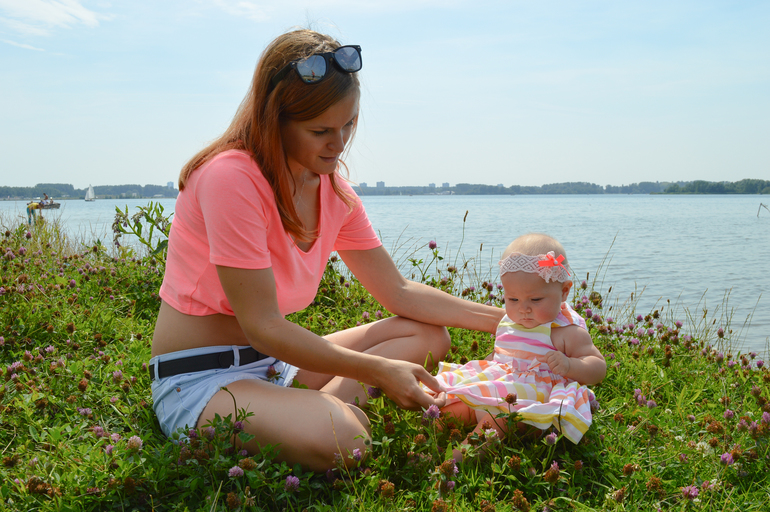 На прогулкеОдела свою дочь в платье, раз уж такая погода. Мамы девочек, как вы относитесь к платьям? Нам надарили ворох всяких красивых, некоторые одели всего по разу. Неудобно же. Либо Белла ест подол платья, либо оно задирается, когда надо пристегнуть её к автокреслу или к коляске. Либо, когда всё аккуратно поправлено и пристёгнуто, она раздвигает ноги на весь максимум, на который способна. Моё мнение такое, что платье надо уметь носить, а младенцы не умеют этого делать, и нельзя их в этом винить, милашек :)