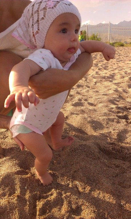Это был крутой месяц, насыщенный на события! Самое главное, когда Лесе было 3 месяца и 10 дней, мы отправились в первое ее путешествие на море. На машине 7 часов, примерно 550 км, на Иссык - Куль. Конечно я долго сомневалась, ехать ли. Ведь дорога дальняя, прививок кроме роддомовских нет, не знала как она отреагирует на смену обстановки, условия не как дома, и прочее. Но учитывая дикую жару в городе, здоровую деревенскую пищу и помощь мамы, а также установку балкона дома, решили ехать.