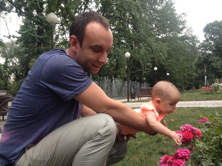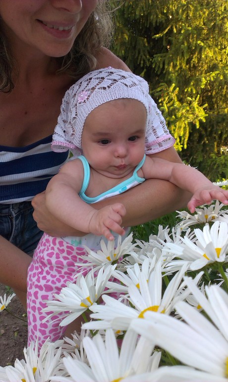 Дорога прошла отлично, что туда, что обратно. Дочь либо спала, либо сосала грудь. У нас там свой дом, правда летом с водой напряг, нов целом он очень даже ничего. Большой сад с черешней, светлый, прохладный. Доче понравилось. Она вообще была в диком воссторге от всего нового и начала много много улыбаться :) Фотки фотки )))