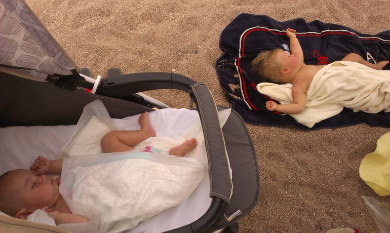 Еще туда приехала моя тетя, с двумя дочками - 5 лет и год. Сами понимаете, балаган с детьми был еще тот. ))) Так выглядели наши полчаса тишины. Олеся и ее годовалая тетушка спят под шум прибоя :)