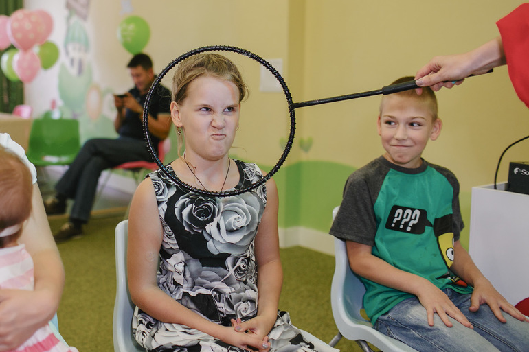 Ведущая шоу знакомила детей с каждой своей ракеткой, называя ее по имени. У каждой ракетки было особенное настроение - одна ракетка была веселая и озорная, другая важная "как президент", третья хмурая и так далее: