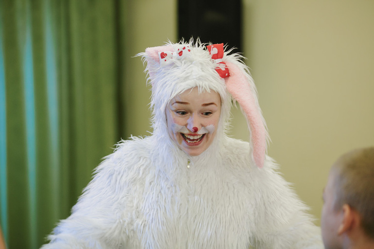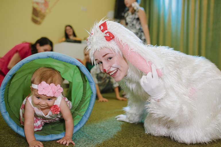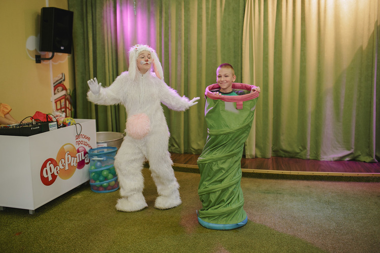 После вкусного перекуса в гости к детям заглянул Зайка. Зайка очень спешил на праздник к Софии и потерял подарки )) Как вы уже догадались, вся дальнейшая сюжетная линия зайкиного квеста разворачивалась вокруг поиска подарка)))