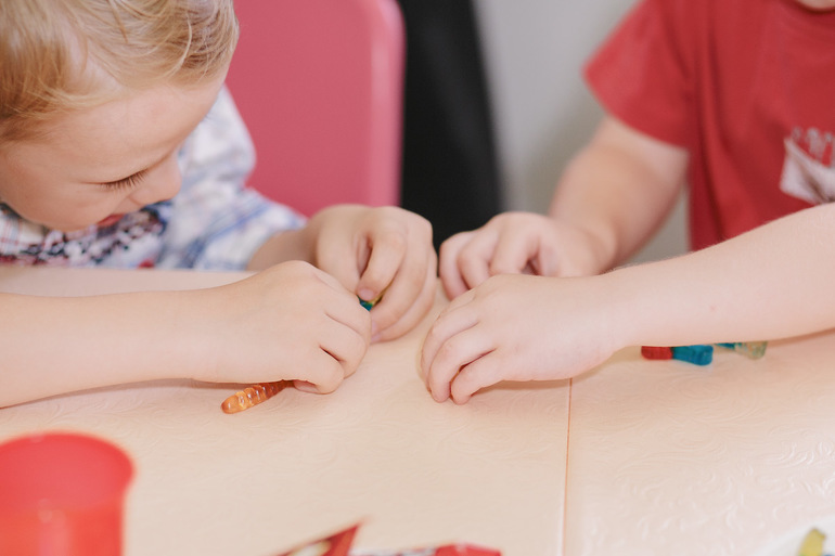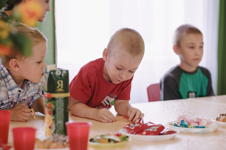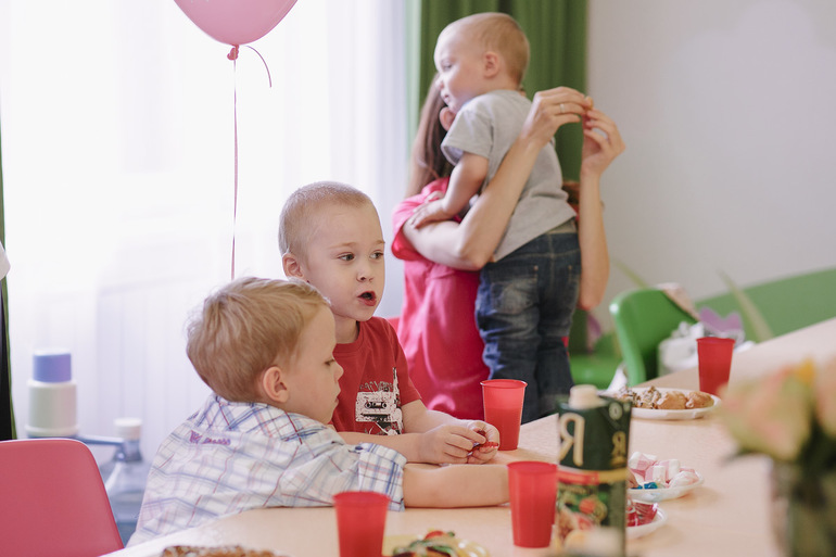 После "Шоу мыльных пузырей", детки, вдоволь набегавшись и напрыгавшись, устроили маленький перерыв с угощениями:
