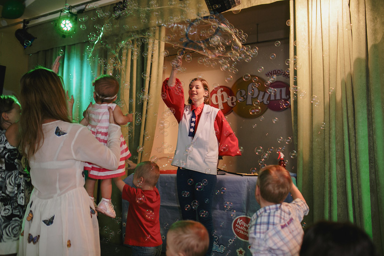 Наш праздник начался с представления "Шоу мыльных пузырей". Дети были в восторге! Да, и взрослые, не остались равнодушными )) Однозначно, это хит №1 в программе детских развлечений еще на несколько лет)))