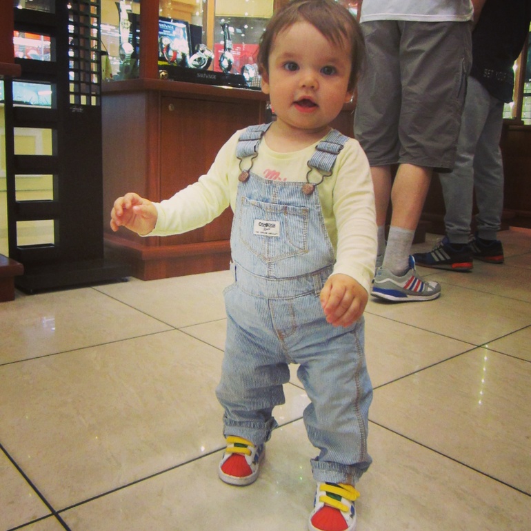 Начала ходить в 9,5 месяцев, сама, до этого рано начала вставать без опоры, за руки не ходила, ходунки не воспринимала....такая самостоятельная мадам! Настины куколки ей побоку, а вот коробочки,стаканчики и бытовая утварь-любимые игрушки! Это все обязательно надо полизать,погрызть,разорвать,одним словом- балавнюка))...и попробуй не дай, будет рычать и всеми способами высказывать недовольство! Но тем не менее, она безумно сладкая девочка, её обожают все,одна улыбка чего стоит!