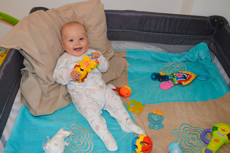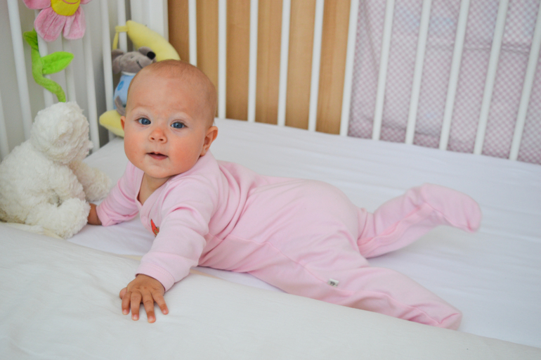 Да, я тоже меняю ей положение тела бесконечное число раз за день. Не знаю, говорят, сложно, когда пойдёт/поползёт, но по мне так сложнее, когда они куда-то хотят, но не могут (((