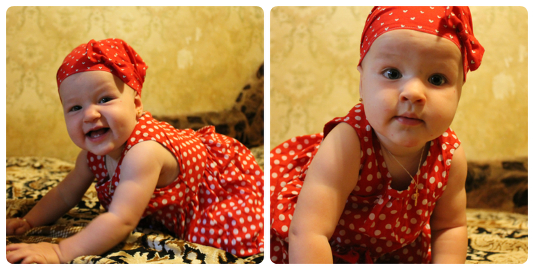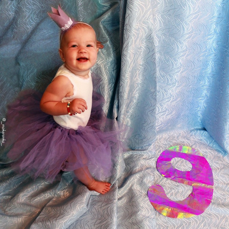 Я как всегда, с небольшим опозданием...со сборами старших в школу времени катастрофически не хватало... И вот... 29 августа, нашей милой принцессе исполнилось 9 месяцев! Совсем незаметно пролетело время, только вроде вчера вглядывалась в еле заметную полосочку на тесте, а уже два срока пролетело... 9 месяцев внутри и 9 месяцев рядом с нами!