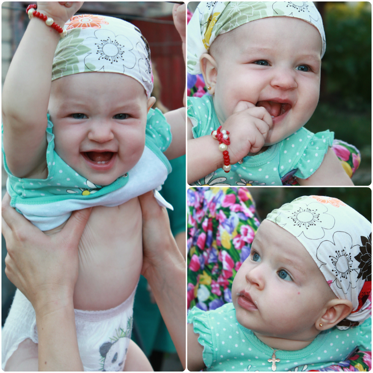Мамина радость, мамина гордость!)) Поздравляю с еще одной маленькой датой! Она у вас головные уборы любит похоже! Моя все что без завязок тут же снимает! Еще заметила браслетик. А как она к нему относится? Моя бы пыталась бы снять и съесть наверное 😂